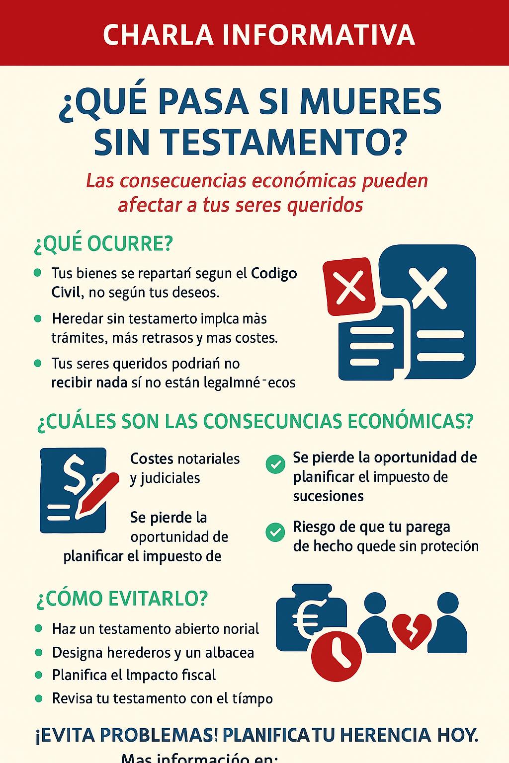 | Evita conflictos familiares | Sí, al dejar instrucciones claras sobre el reparto | No, es común que surjan disputas entre herederos |